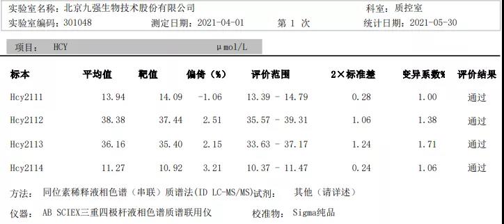 九強生物2021參考測量能力驗證活動(dòng)結果公示