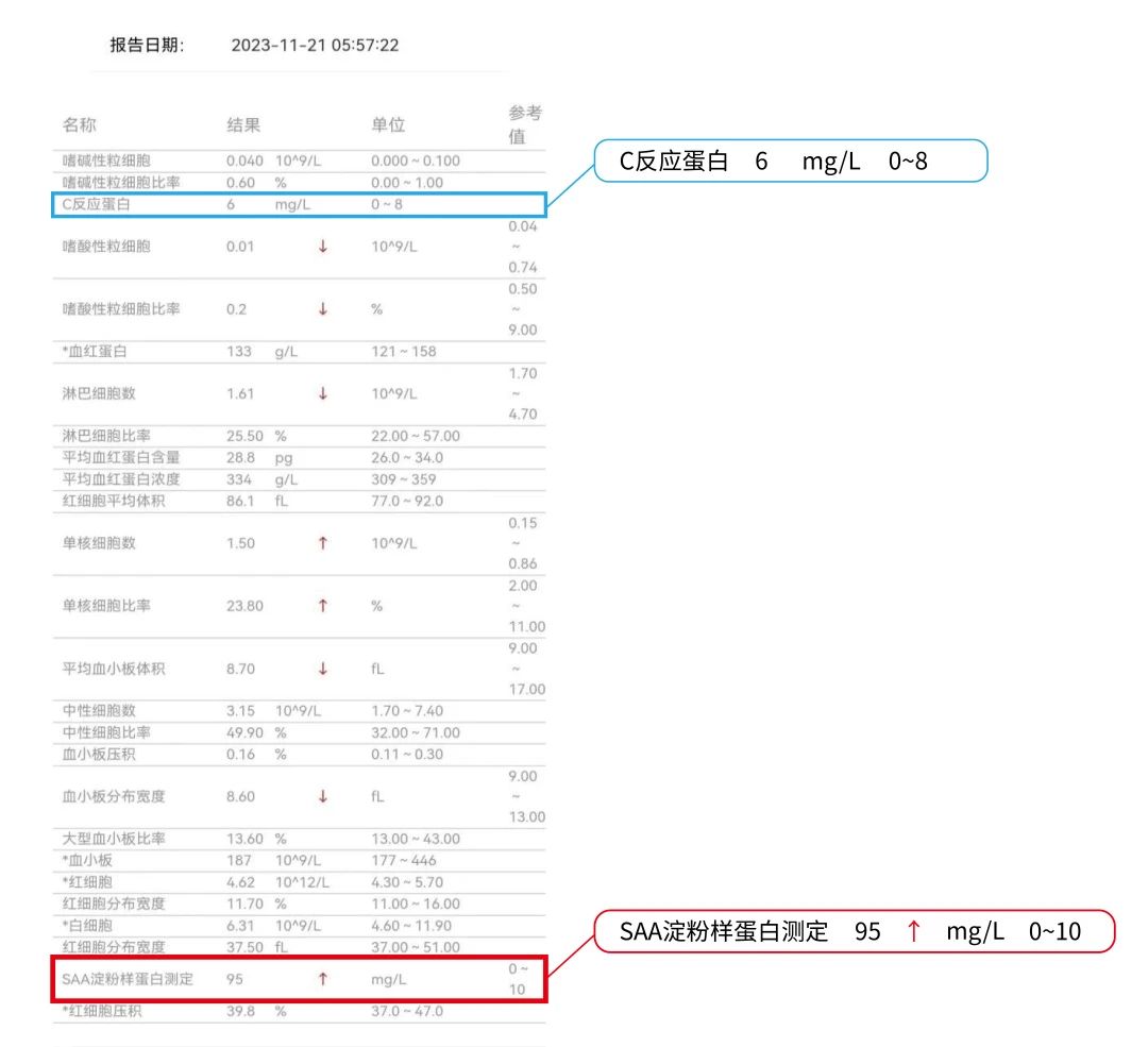 在常見(jiàn)的血液檢測指標中,除常規的血常規、C反應蛋白(CRP)檢測外,另一炎癥指標——血清淀粉樣蛋白A(SAA)的檢測在該類(lèi)疾病的診療中敏感性備受關(guān)注。