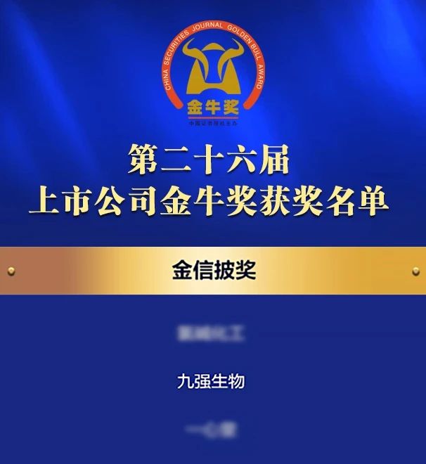 喜訊 | 九強生物榮獲第二十六屆上市公司金牛獎“金信披獎”